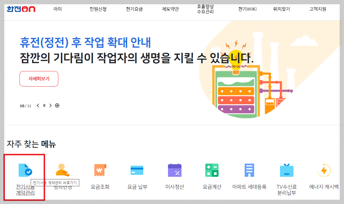 1) 한전 홈페이지에 접속합니다.(어플도 동일)